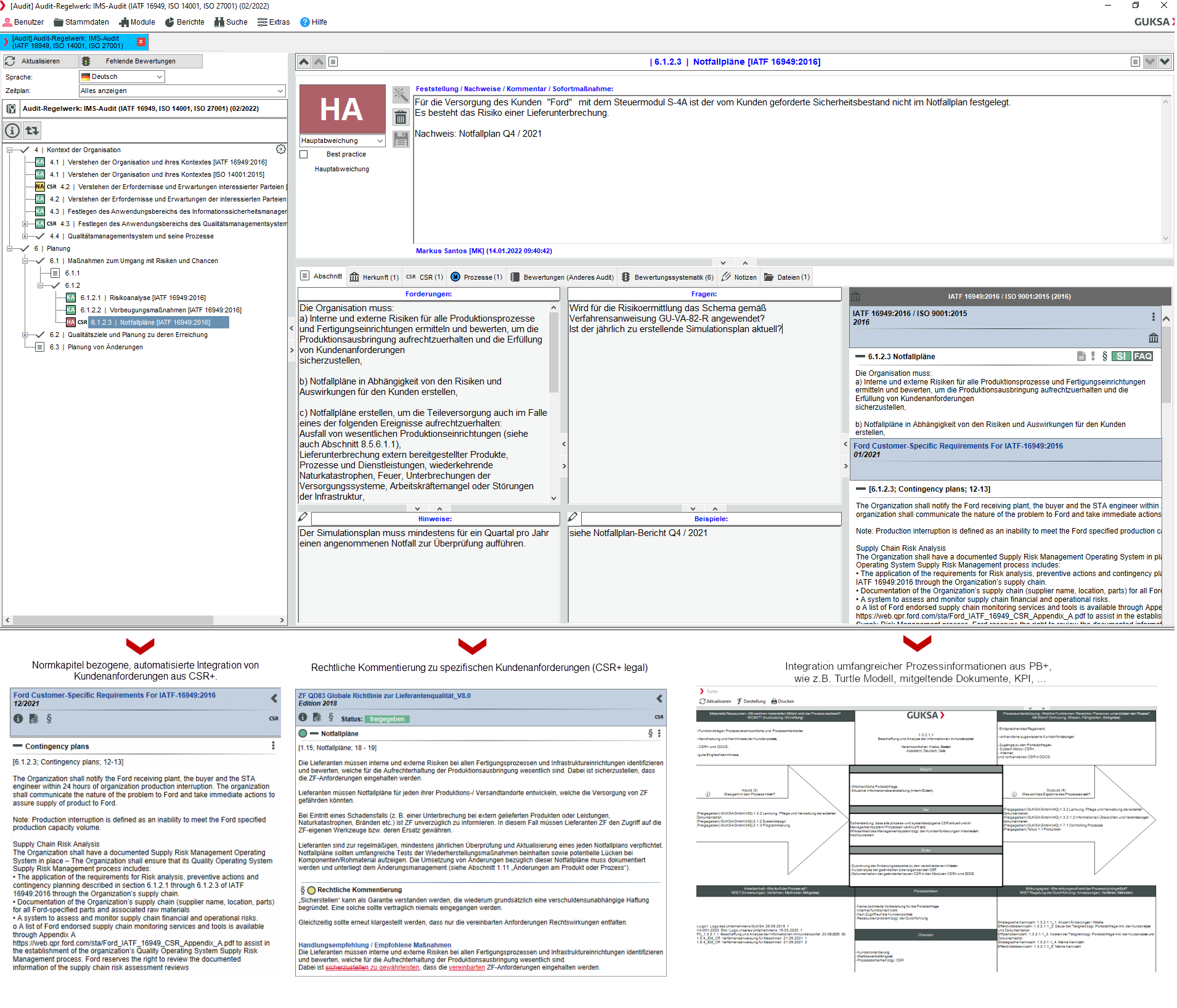 AUDiT 可用于按照预定义或完全个性化的程序进行审核。AUDiT 可对不同的审核进行比较,同时也将风险考虑在内,从而创造出可观的附加值。 -