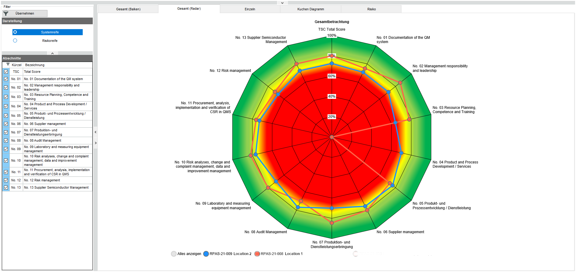 借助完全可定制的调查问卷/检查表以及可自由定义的评估程序,RPAS 既可执行和管理传统审核(如 ISO 9001、IATF 16949、过程审计、供应商审核等),也可执行和管理专为贵公司开发的审核,如方法评估、客户特定审核、分层流程审核等。