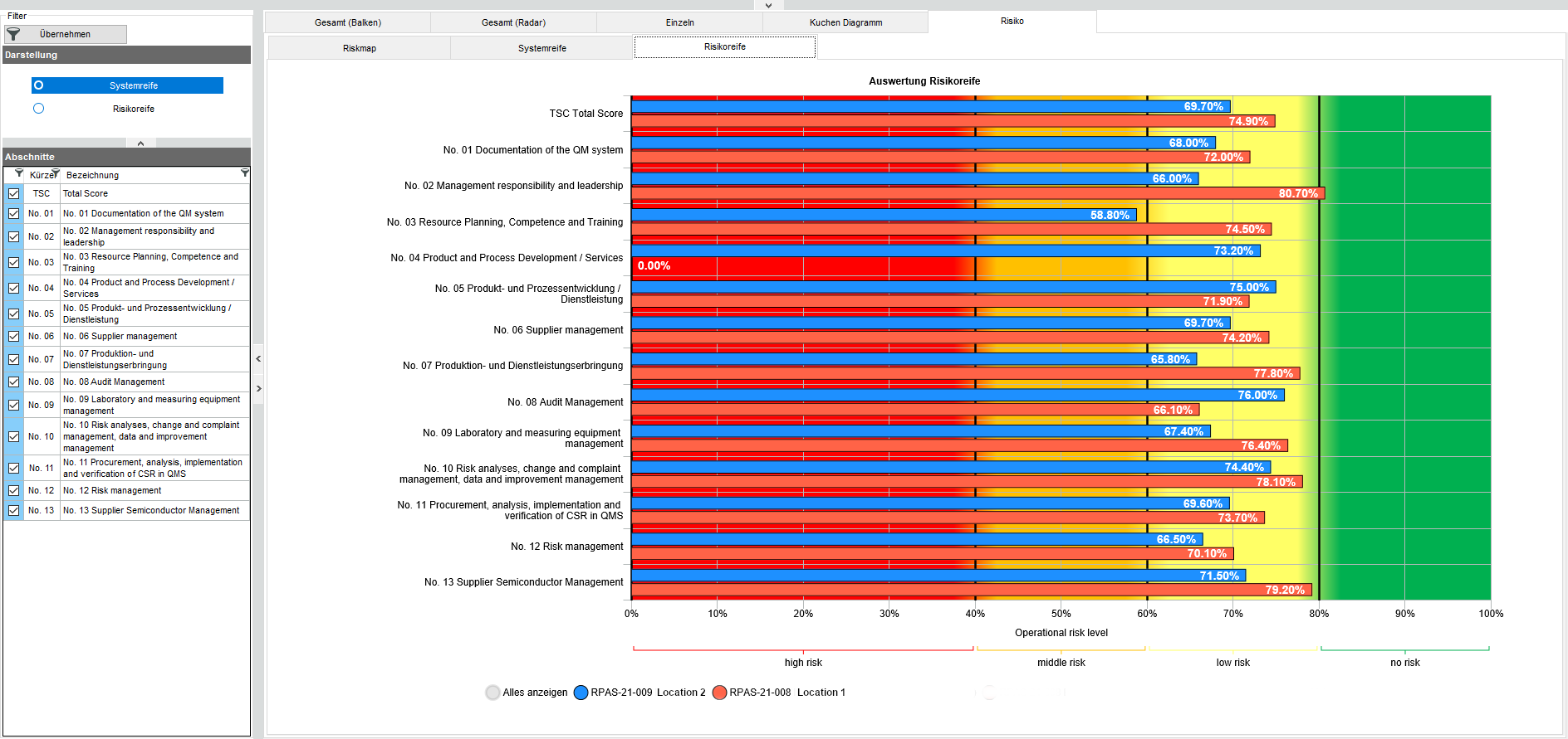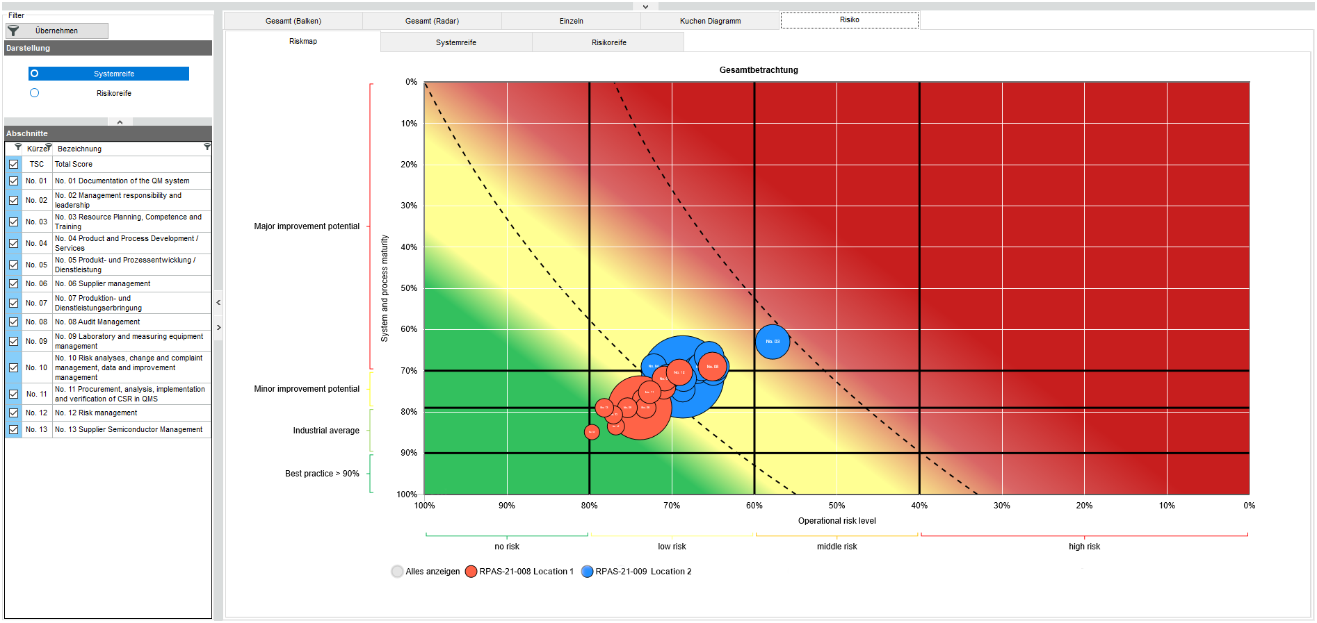 通过定义危险区域和不同的风险权重,很快就能明确哪些审计偏差会给自己的公司带来重大风险。