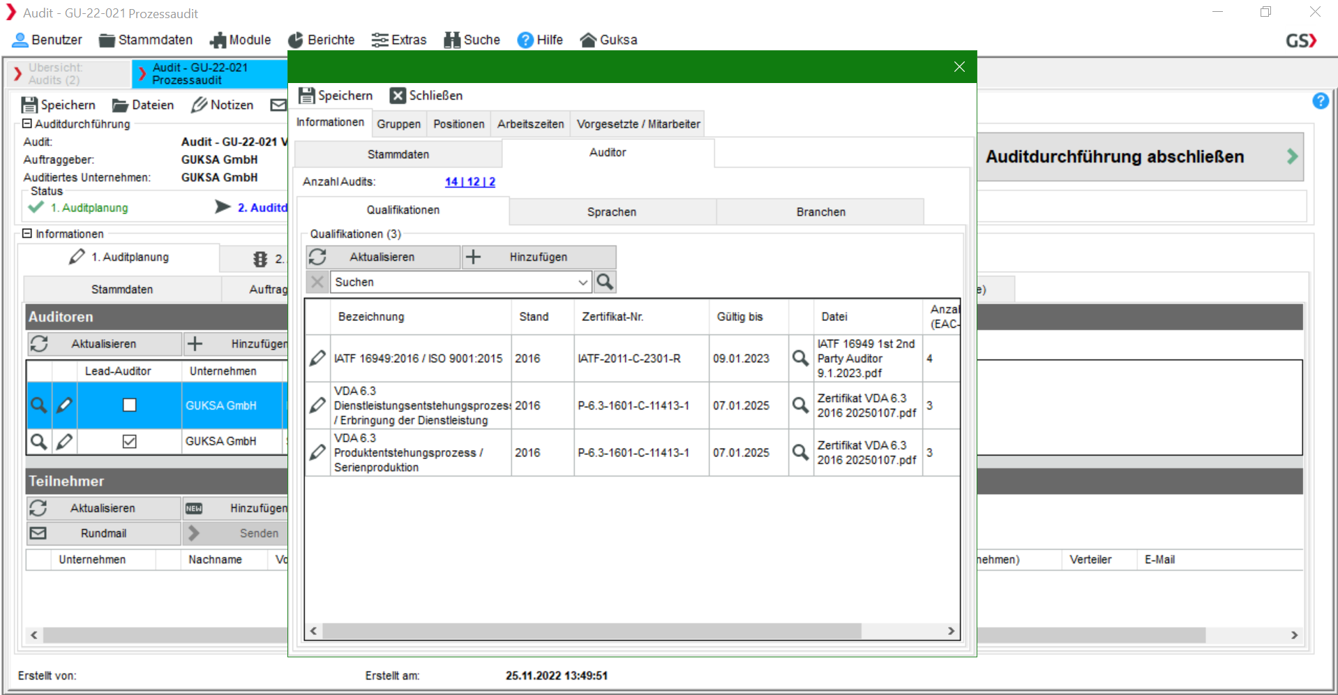 内部和外部(流程)审计的规划和实施往往需要组织投入大量资源(时间/成本)。审计>GUKSA PAS-P 软件在这方面为您提供支持,并为您提供广泛的解决方案。